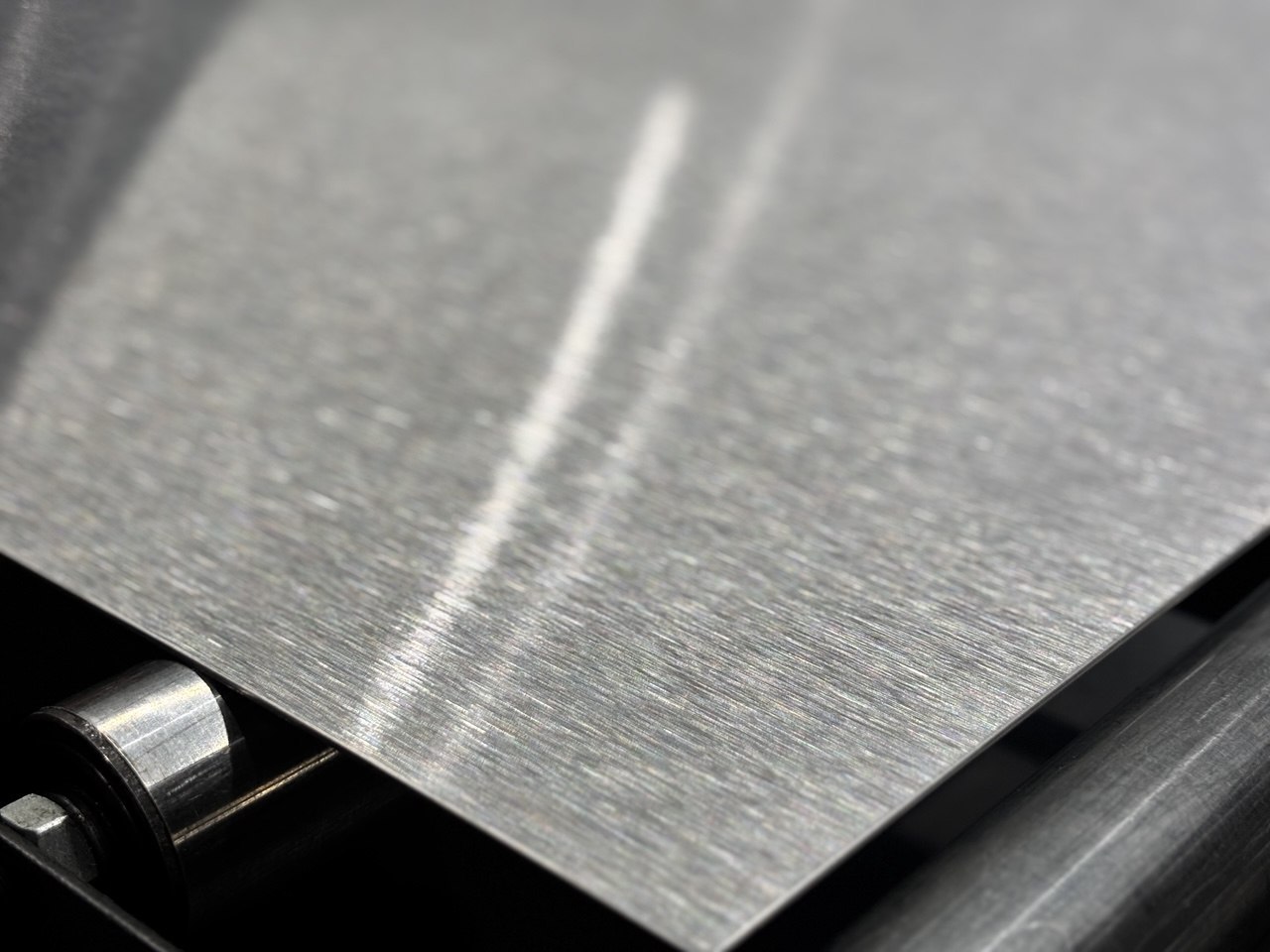 Сатинирование — это воздействие абразивами на верхний слой материала. В результате поверхность покрывается параллельными полосами. Сатинирование придает металлу стильный атласный вид, маскируя при этом мелкие дефекты — царапины и вмятины.